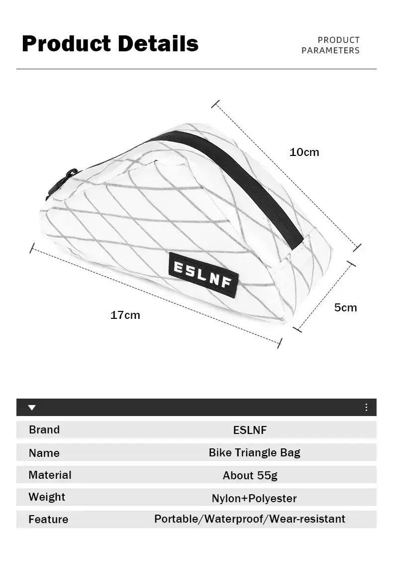 Desde quienes pedalean diariamente en la ciudad hasta los amantes del ciclismo de aventura, la Bolsa Triangular Impermeable es un accesorio esencial. Su diseño minimalista y su color blanco elegante combinan con cualquier tipo de bicicleta y estilo personal.