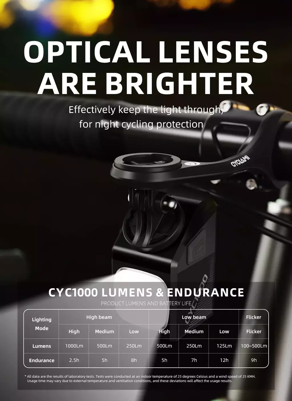 Disponible en múltiples versiones —CYC1000, CYC1000 PRO, CYC1000 PRO group A, CYC1000 PRO group B, CYC1000 group A y CYC1000 group B— este faro se adapta a distintos estilos de ciclismo y necesidades.